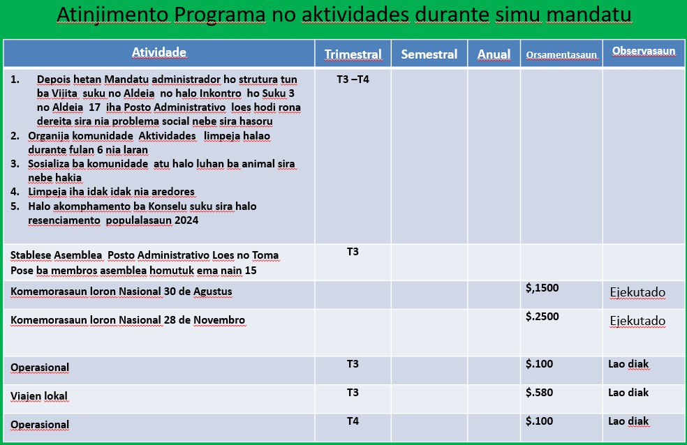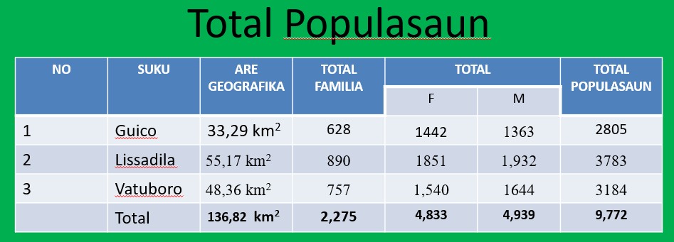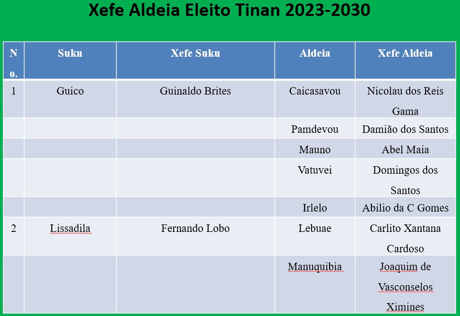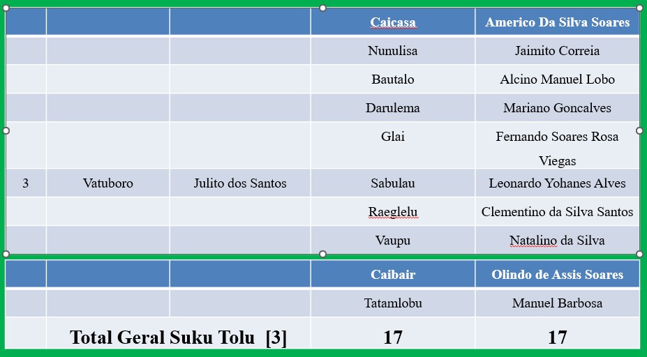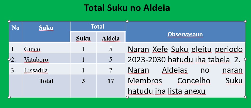•Aldeia sanulu resin hitu ( 17) ho kompozisaun iha tabela 1 tuir mai :