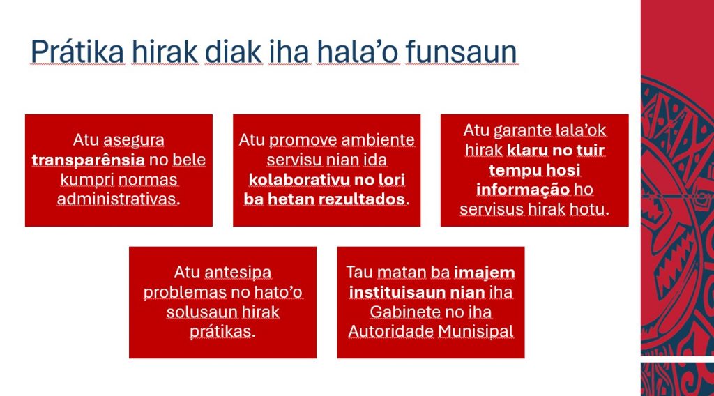 •Atu fasilita komunikasaun interna no externa iha Autoridade Munisipal.