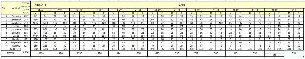 Tabela – 1 : Naran Suco Dato , Total Aldeia