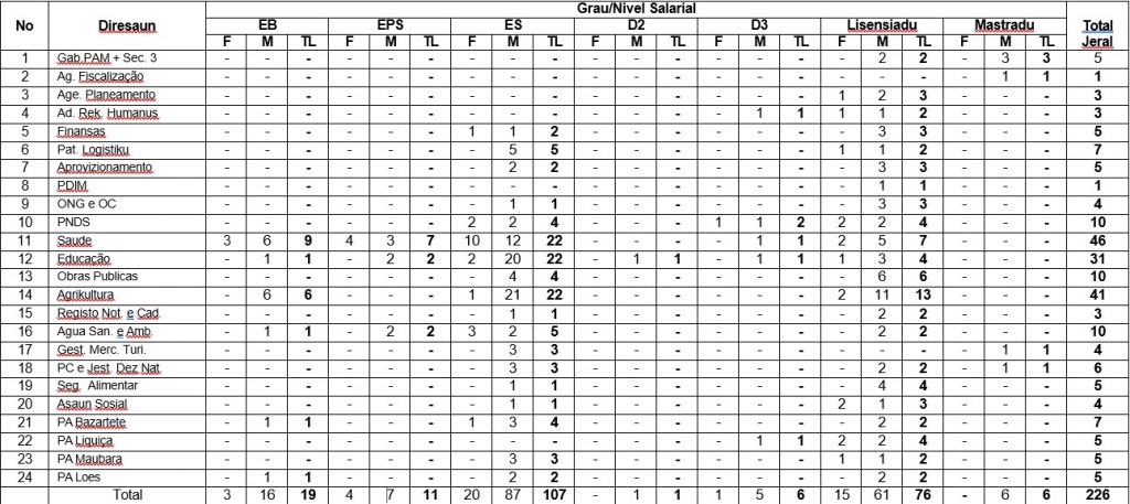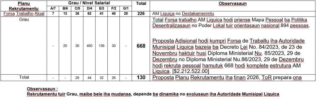 6. TABELA PLANU REKRUTAMENTU FUNSIONARIU 2026 HODI PRIENSE ESTRUTURA MUNISIPAL SEI HALA’O FAZEADAMENTE