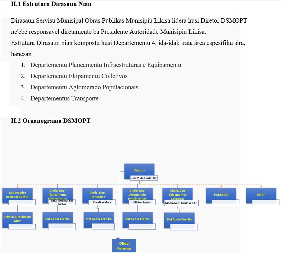 II. STRUTURA DIRASAUN SERVISU MUNISIPAL OBRAS PUBLICAS NO